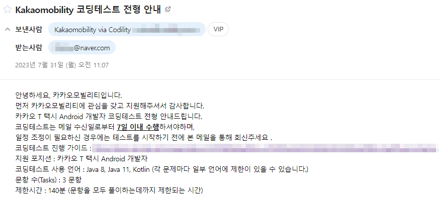 기한은 7일 내로 소개된 코딩테스트 링크를 통해 테스트를 진행하면 되는 것 같은데.. 7일 내로 준비를 잘 해내야겠다.