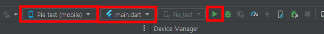 왼쪽부터 에뮬레이터, 실행할 코드, 실행버튼입니다.