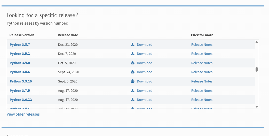 릴리즈 버전 중 3.8 ~ 3.10 사이의 버전을 골라 설치합니다.